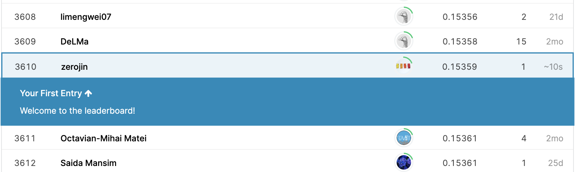Pycaret의 순위는 전체 4,646명 중 3,610위를 기록했다.