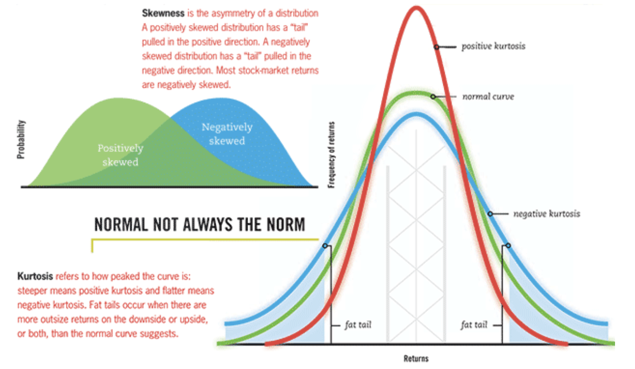 1) 왜도(Skewness) : 평균을 중심으로 좌우로 데이터가 편향되어 있는 정도