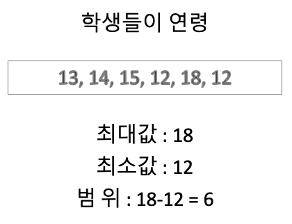 1) 범위(RANGE) : 최대값과 최소값의 차이