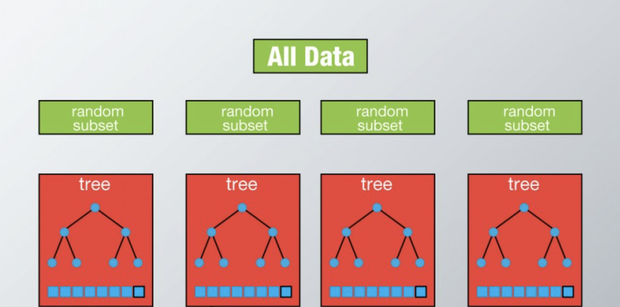 : 앙상블(Ensemble) 방식 중 하나로 부트스트래핑(Bootstraping)을 통해 여러 학습 데이터를 만들고 개별 모델을 통합하여 활용