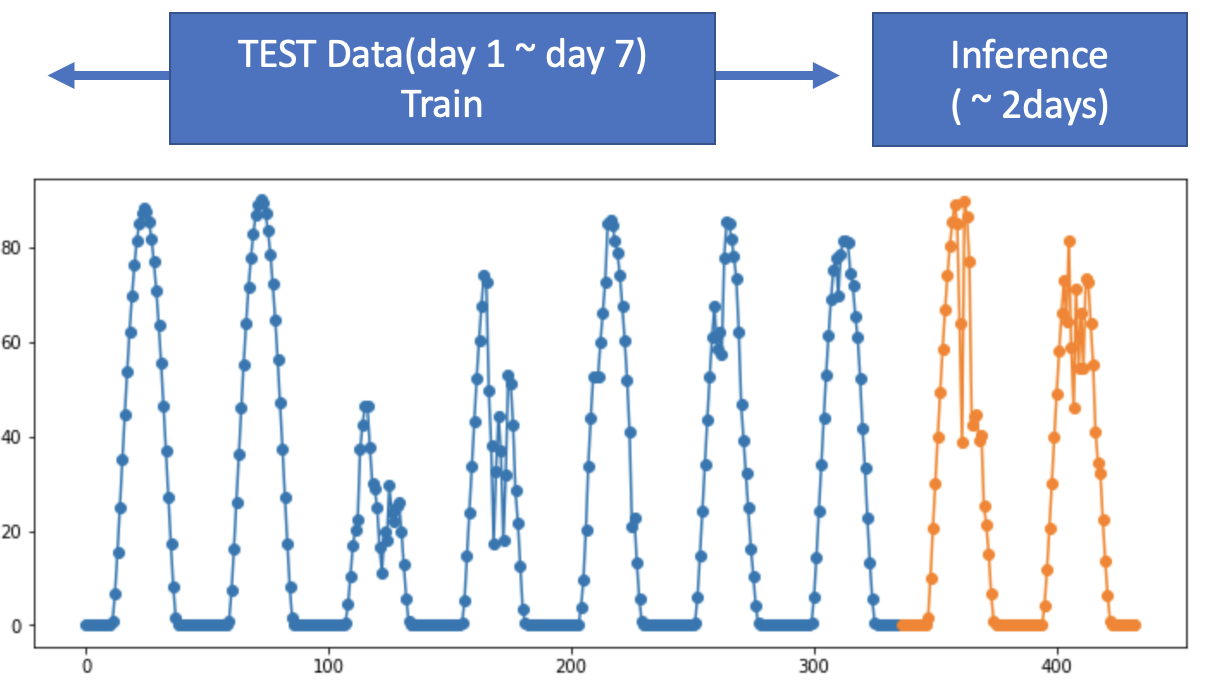 : 평가 받는 Test 데이터는 7일의 실제값을 확인할 수 있음