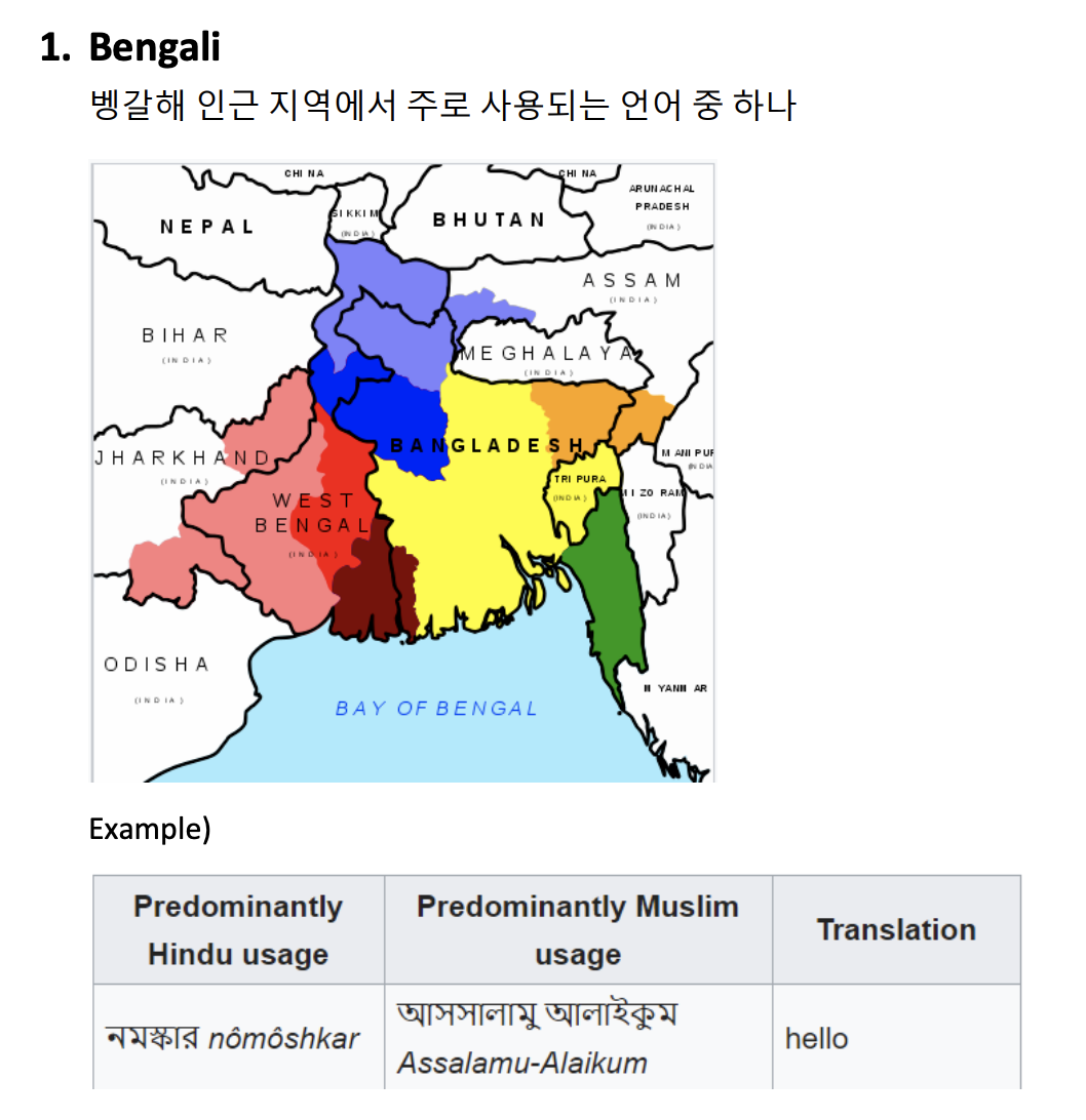 우리가 분류해야 하는 벵갈어는 벵갈해 인근지역에서 주로 사용되는 언어 중 하나이며,
